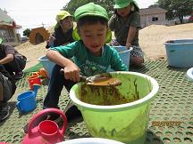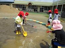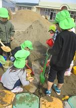 | 佐潟まで歩いてお散歩です! 園庭で大きな山と川作ったよ! |