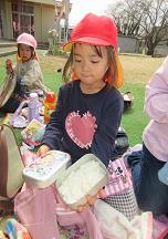 はじめてのお弁当箱にみんな大喜び! 「みてみて!」 |