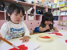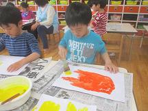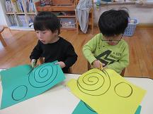 絵の具でお絵描きや はさみでチョキチョキ! 上手にできるかな? |