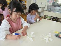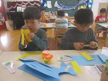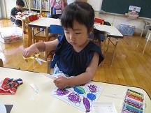 お部屋では絵を描いたり、色々な材料を使って制作を楽しんでいます。 細かい作業も上手に出来るようになりました! |