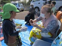 | 園外では桜井の里さんとの交流 焼き芋や焼きマシュマロ ごちそうになりました! |