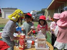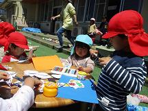 | 天気の良い日にはお外で制作したり お昼ごはんもお外で食べています! |