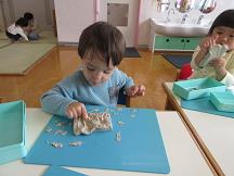 | 天気が悪い日はホールで遊んだり お部屋で粘土や制作をして楽しんでいます! |