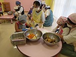 年長児と一緒に 未満児が一生懸命 収穫のお手伝いを してくれました。 |