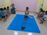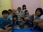 | 生協で購入した 小ぶりなスイカ! みんなで スイカわり〜 |