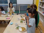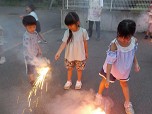 | 夕食はみんなで作った「カレーライス」 旭岡ファームの「枝豆」「きゅうり」 生協で買った「すいか」を食べました! 食後は… 「花火」をしたり 「うちわ」を作ったり 「アイス」を食べたり |