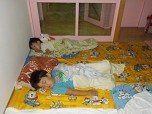 | 今年は、とにかく暑い お泊まり会でした。 日中の暑さと、盛りだくさんのスケジュール!! 夜は、疲れてグッスリ眠れたようでした。 ママやパパ、兄弟から離れて眠る… こんな経験をして また一つお兄さん、お姉さんになった 年長児です♪ |