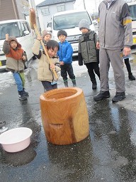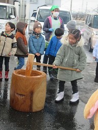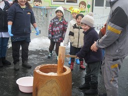 餅つき会を行いました。体験したのは、