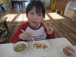 ぞう組さんがなべっこ団子作りを体験しました。由来や形などお話を聞いてから、実際作ってみました。きりん組〜ぞう組さんでおいしくいただきましたよ〜