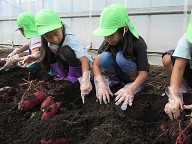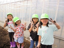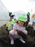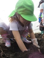 さつまいも堀りをしました♪大きいさつまいもに大興奮!掘り方を教えてもらい、時間がかかりながらも最後まで一生懸命掘りました。自分で掘ったお芋を嬉しそうに見せてくれました。