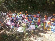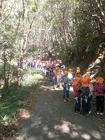 森で遊ぼうの目的の一つに”観音様”のところまで行くことがあります。山に入る前は見えるか見えないかぐらいの観音様が近くまで行くとこんなに大きく見えて、子どもたちはびっくりでした。