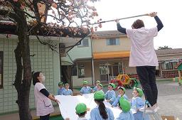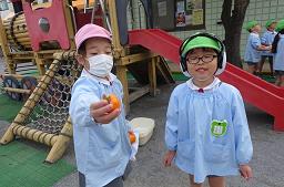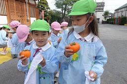 | 柿もぎ 福寿院幼稚園、秋の風物詩である「柿もぎ」♪ 今年も、柿の木はたくさんの実をつけました。 みんなで力を合わせて、頑張るぞ! |