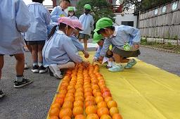 | 枝や葉っぱを拾い集めたり、もいだ柿をきれいに並べたり… 子どもたちがせっせとお手伝いをしてくれます。 とても働き者で、大助かりでした♪ |