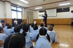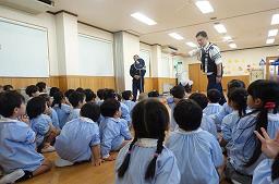 | 交通安全教室 竹の塚警察署のお巡りさんが、幼稚園へ来てくれましたよ。 交通ルールを分かりやすく、丁寧に教えてくれました。 |
