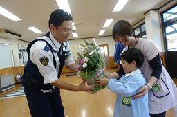 最後に、お巡りさんへ感謝の 気持ちを込めて、お礼をしました。 改めて、交通ルールやマナーを 楽しく学ぶことができました♪ |