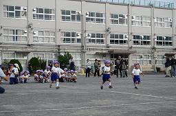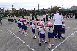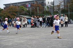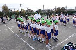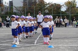 | 気持ちの良い秋晴れの日に、運動会を行ないました。 この日に向けて、一生懸命頑張ってきた子どもたち。 足立区立西伊興小学校の校庭をお借りして、 日々の保育の成果を発表しました。 みんなで力を合わせて、頑張るぞー!! |
