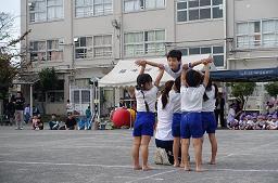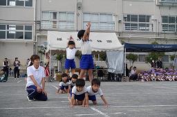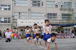 | NO.4 組立体操(年長) 運動会に向けて、コツコツと練習を重ねてきた年長組。 大変な時もみんなで励まし合い、力を合わせて頑張りました。 |