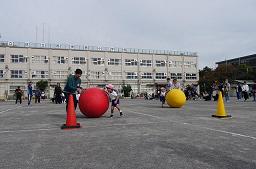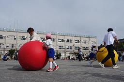 | NO.5 親子でコロコロ!大玉リレー(年中親子競技) 親子で一緒に息を合わせてよーいどん! 「おっとっと!」「よし!もう少し!」 あっちにコロコロ、こっちにコロコロ… 大接戦のレースになりましたよ♪ |