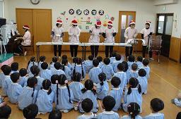 スズ、トライアングル タンバリン、大太鼓、小太鼓… きれいな音色だね! クリスマスの雰囲気を たっぷり楽しみました。 |