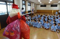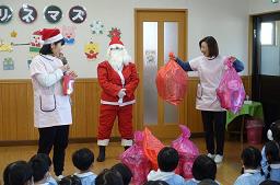 | ♪ジングルベル ♪あわてんぼうのサンタクロースなど、 みんなでクリスマスの歌を楽しく歌っていると… 赤い服を着たサンタクロースが! |