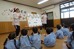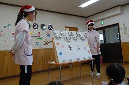 | 今日は、待ちに待ったクリスマス会! 先生たちによるお楽しみが盛りだくさんです♪ さあ、クリスマス会のはじまりはじまり〜! |
