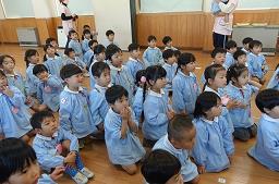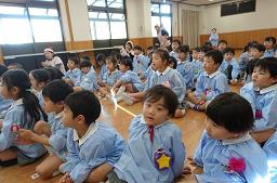 | 〜パネルシアター「急いで!サンタさんを着替えさせよう」〜 おとぼけサンタさんのために、みんなで力を合わせて サンタクロースの赤い服を着させてあげよう! 子どもたちの笑い声が賑やかに響きました。 |