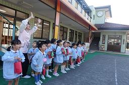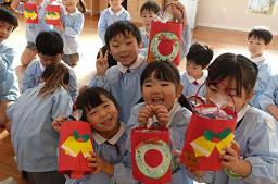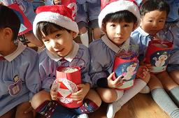| 「サンタさんだ〜〜!!」みんな大喜び! たくさんのプレゼントを持って、福寿院幼稚園に来てくれました。 サンタさんに会えるなんて、特別なクリスマス会になったね。 |