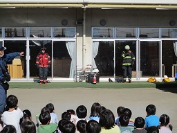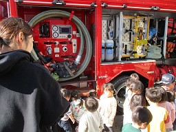 | 子ども達はとても熱心にお話を聞いていて、火事の怖さ、消防士さんの事について大切なことを学ぶことが出来ました!! |