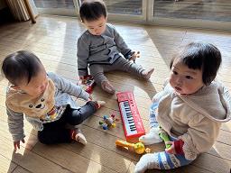 | 今月の保育園の様子☆ 昨年のクリスマスにサンタさんからもらったおもちゃでたくさん遊んでいます。 |