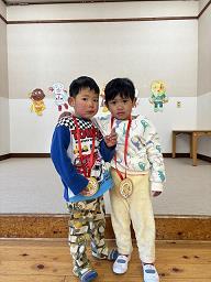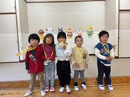 | 1月30日(金)、マラソン大会が行われました。 保育園の周りを走るコースで、 バード組(2歳児)1周 1,2組(3,4歳児)2周 3組(5歳児)3周を走りました。 バード組のやっと一周を走り切るかわいい姿から、3組では長い距離をを走り切るたくましい姿についつい応援も熱くなってしまいました。たくさんの保護者の声援も届き、子どもたちも力になったと思います!頑張った子どもたちの笑顔はとても輝いていました。 |