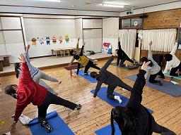 | 午後は子育て学級で保護者を対象にヨガを行いました。日頃の疲れた体をリフレッシュする良い時間になったと思います。その後は子どもとおやつタイムとなり、おうちの人と食べるおやつはいつも以上においしそうでした!ご参加ありがとうございました。 |