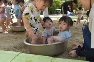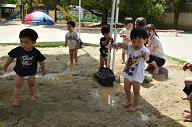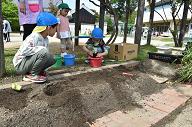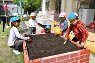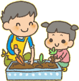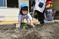 | みんなで、なす、トマト、ピーマン、きゅうり、 パプリカ、枝豆を植えました。 おおきくなあれ、おいしくなあれ 水やりお当番頑張ります! |