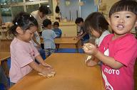 棒でのばしたり、型抜きをしたり、みんなパン屋さんみたいでした。