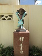 | 保育園のこれまでの歴史が詰まったパネルシアターを見たり、くす玉をみんなで割ったりしました。Γほいくえん、おたんじょうびおめでとう!」園庭の未来君も、喜んでいます。 |