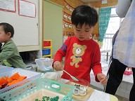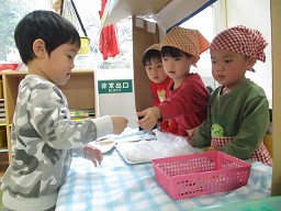 | にじぐみさんが、おみせやさんになりました☆ おかしやさんにうどんやさん、自分で好きなものをえらんでいきます。 |