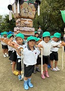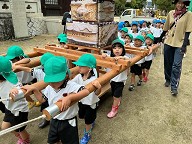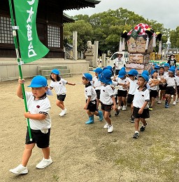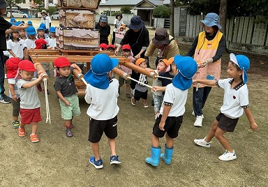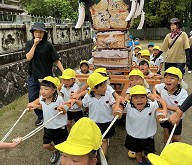 | ミドリ保育園の太鼓台 八幡神社の境内で お祭りを楽しみました☆ |