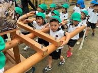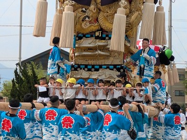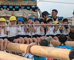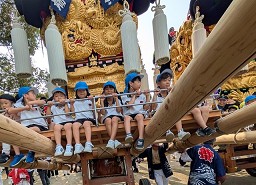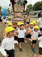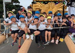 | 新居浜のお祭りと言えば、太鼓祭り!! 小学校のお祭り集会に参加する為、 地域の太鼓台が子ども達を乗せてくれます☆ ワクワク・ドキドキ楽しみです |
