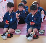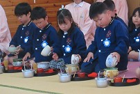 | 一年間のお茶のおけいこの成果 お点前を披露しました。 |