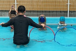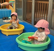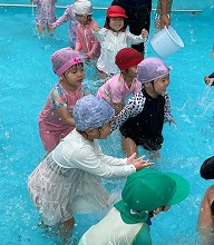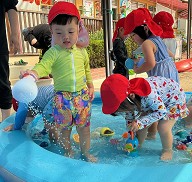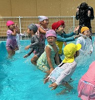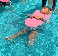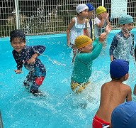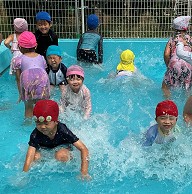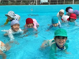 | 楽しかったプール ワニさんや顔つけ 輪くぐりなどなど・・・ 出来ることが増えました☆ |