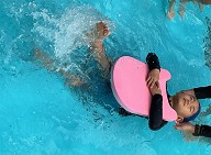 | ビート板でバタ足や ラッコにも挑戦 |