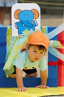 トンネルをくぐり、 風船マットや飛び石を歩いて・・・ お菓子の家を作るよ☆☆ |