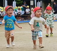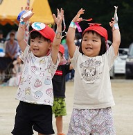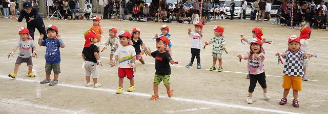 | うさぎぐみ(0歳児)からそらぐみ(5歳児)まで たくさんの拍手や声援をうけ、元気いっぱい頑張りました |