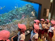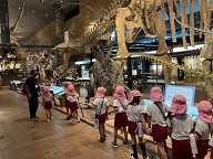 | 4日(水)にバスに乗っていのちの旅博物館に行きました。 大きな恐竜の骨にびっくりな子どもたち、 2億年前の恐竜が生きていた時代のパノラマに興味深々… 目を輝かせながらたくさんの体験をさせてもらったほし組さんでした! |