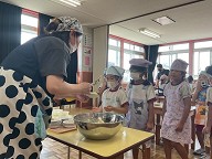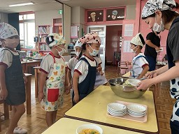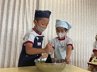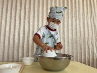| ほし組さんは30日(月)にポテトサラダを作りに挑戦しました!! ボウルにゆでたジャガイモを入れて他の材料と混ぜ合わせ美味しそうなポテトサラダが完成しました! 完成後はみんなで美味しく頂きました。 |
