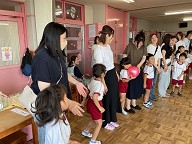 | 18日(水)に6月生まれのお友だちの誕生会がありました。 みんなで歌や言葉のプレゼントをしたり、 保育士の出し物の“誰の傘?”を見たりして 楽しい時間を過ごしました♪ |