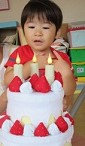 | インタビューや ケーキのロウソク消し 緊張した様子も ありましたが、 みんなにお祝いしてもらい 嬉しそうな笑顔も 見られました。 |
