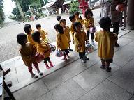 | 11/9 七五三参り クラスごとに、八幡様まで出かけました。 願いごとが叶うように、お賽銭を入れてお参りして来ました。 写真撮影もしましたよ)^o^( |