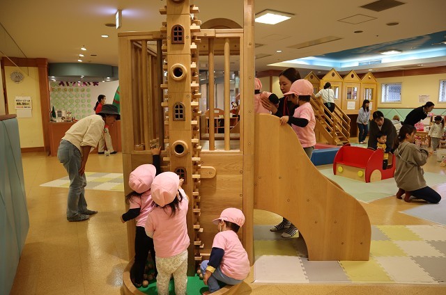 | 11/25(火) 子どもの館遠足(1歳児) 黒崎にある子どもの館に遊びに行きました。 1歳児にとっては少し遠い場所ですが、今年の1歳児はとても落ち着いているので大丈夫。エレベーターにも上手に乗ることができました。 子どもの館は子どもたちにとって魅力的な遊び場で、大喜びでした! |