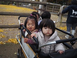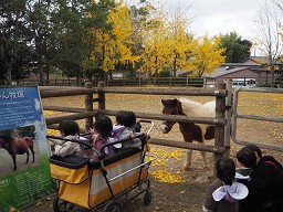 | 11/28(土) 農事センター(0歳児) 園バスに乗って農事センターに遊びに行きました。 馬や牛を指さし「わんわん」と連呼していました(笑) 紅葉がとてもきれいでした! |