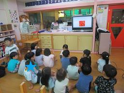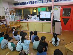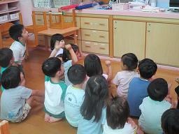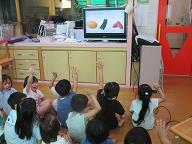 8月の食育活動は、さつまいもについて勉強しました。はと組さんが育てているさつまいもも葉っぱが伸びてきました。9月にさつまいも掘りを予定しているので、さつまいもについてクイズ形式で学びました。 |